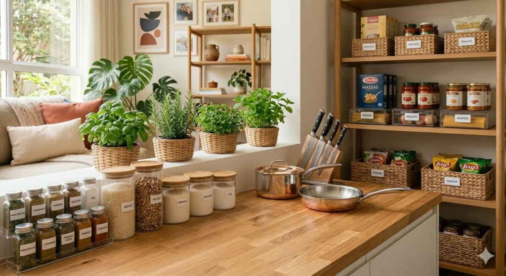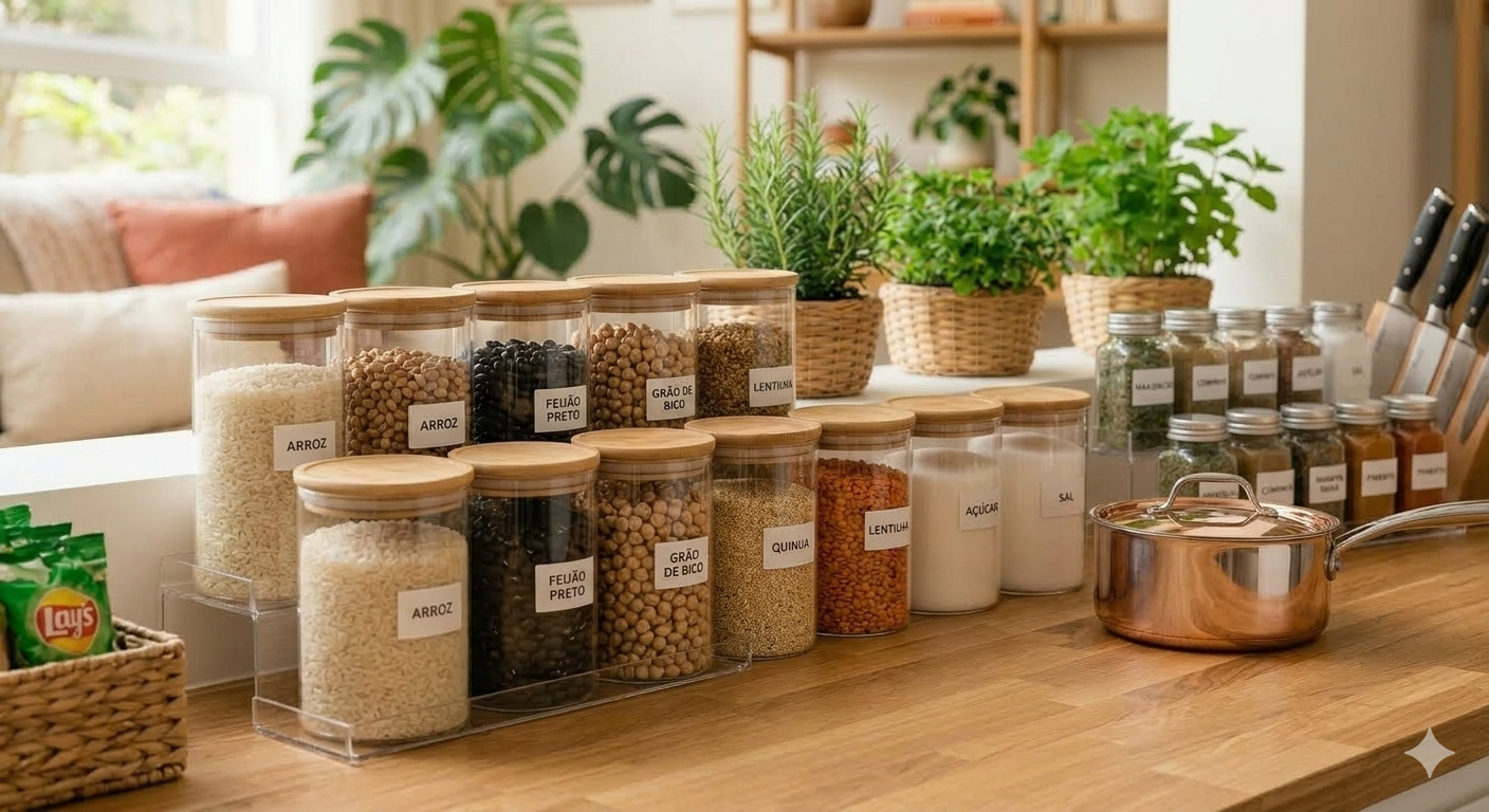 Uma das primeiras coisas que ajudam na organização é observar o que realmente é utilizado no dia a dia. Muitas vezes acumulamos utensílios ou recipientes que quase nunca usamos, e isso acaba ocupando espaço desnecessário.